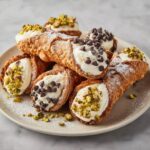 Once filled, lightly dust the cannoli with powdered sugar for a touch of elegance and sweetness. Fresh mint leaves or a few whole pistachios on the side can also brighten the presentation and add a subtle aroma that guests will love.