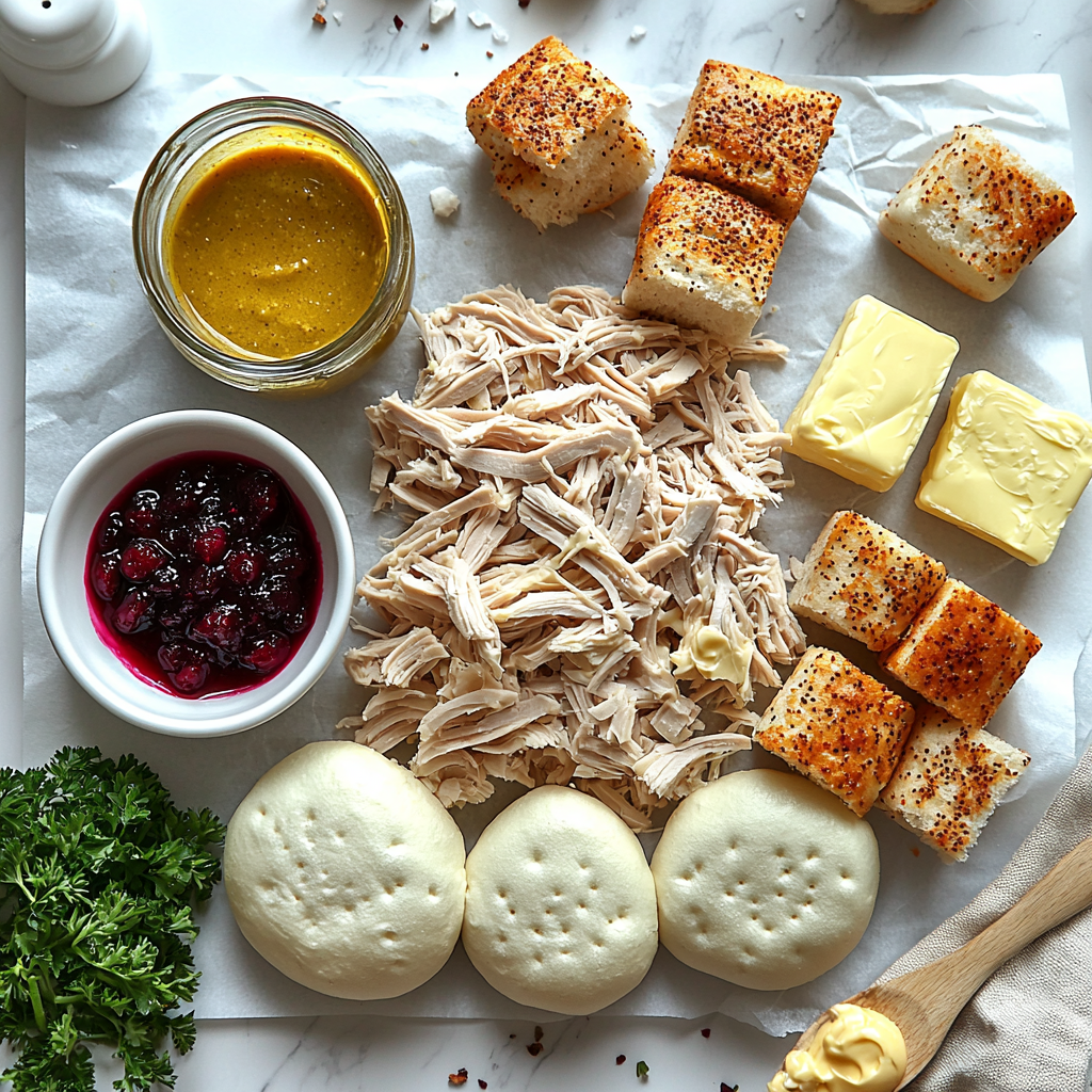 These ingredients are simple but essential, each playing a vital role in creating the perfect harmony of flavors and textures in your Turkey Cranberry Sliders Recipe.