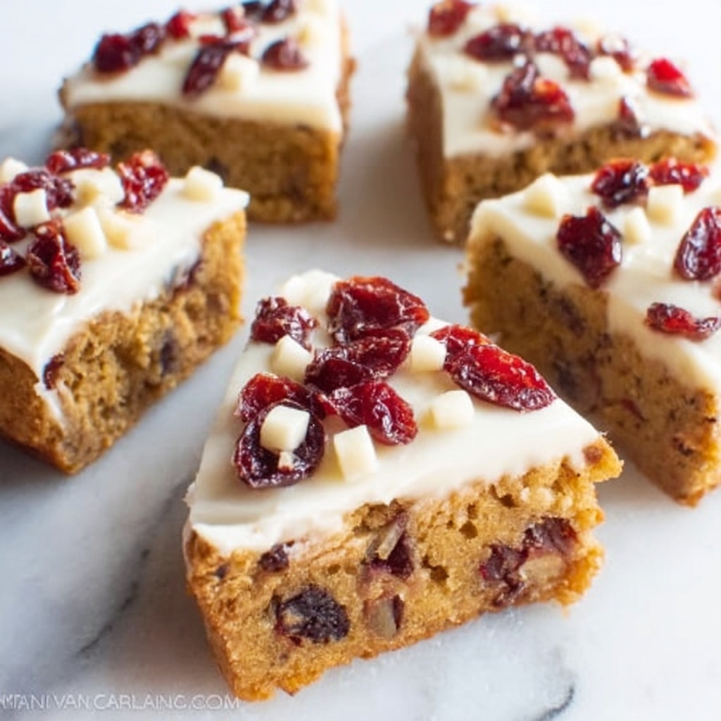 Try serving these bars on a rustic wooden board with a scattering of cranberries and white chocolate shavings. Another fun idea is to cut the bars into smaller bite-sized pieces for parties or dessert tables, letting guests savor little bursts of sweetness with each bite.