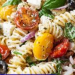 For a fun twist, serve this pasta salad in hollowed-out bell peppers for an elegant presentation, or layer it in clear glass jars for easy picnic packing. Bringing out the deep reds, greens, and creamy whites will catch eyes and whet appetites right away.