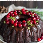 Let the cake rest in its pan for 10 minutes after baking to firm up slightly and prevent breaking during removal. Then, carefully turn it onto a wire rack to cool completely. Once cooled, drizzle the shiny dark chocolate glaze over the top in generous, inviting ribbons. Add fresh red currants and rosemary sprigs for an elegant, festive finish that feels effortlessly special.