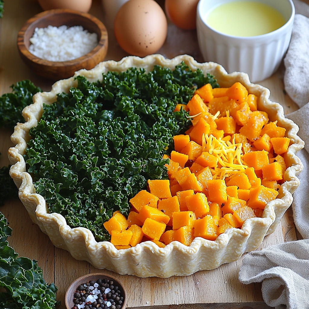 This Winter Vegetable Quiche recipe combines a flaky pre-made pie crust with sautéed kale, butternut squash, mushrooms, and onions, all bound together with a creamy egg custard and topped with melted cheddar cheese. Perfect for cozy winter meals, this quiche offers a delicious way to enjoy seasonal vegetables in a savory and comforting dish.